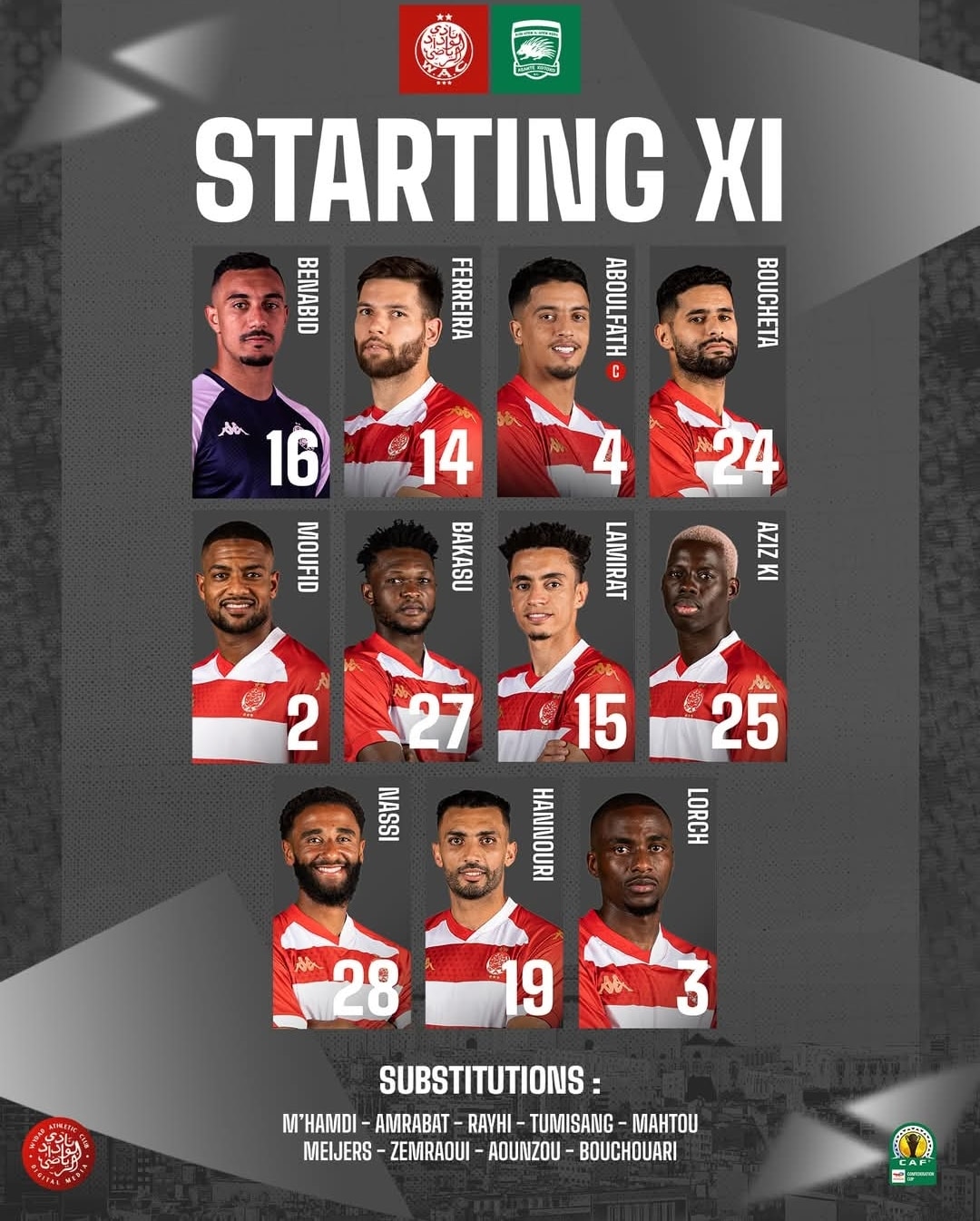 أعلن مدرب الوداد الرياضي، محمد أمين بنهاشم، عن التشيكلة التي ستخوض مواجهة الإياب أمام أشانتي كوتوكو، ضمن الدور التمهيدي الثاني من مسابقة كأس الكونفدرالية الأفريقية.