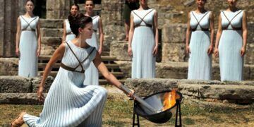 احتفالات إيقاد الشعلة الأولمبية باليونان بدون جمهور